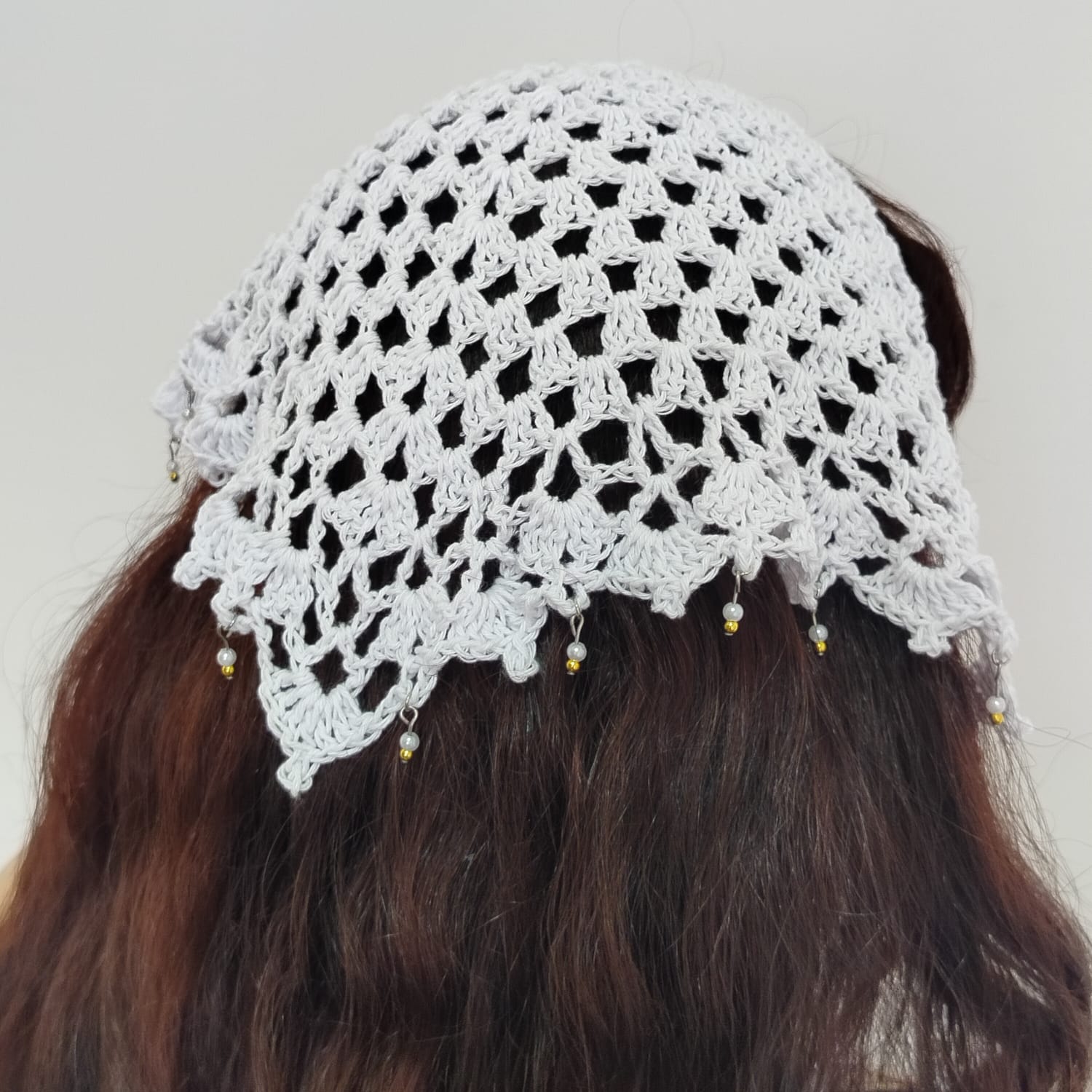 Bandanas feitas artesanalmente em crochê, com pérolas e contas douradas. Um acessório perfeito para os dias de sol, proteger o penteado, além de ficar perfeito para incrementar seu look para shows, festivais e passeios no geral.