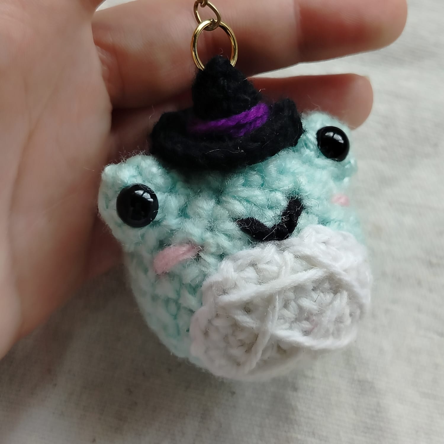 Chaveiro em formato de sapinho bruxo feito artesanalmente em croche