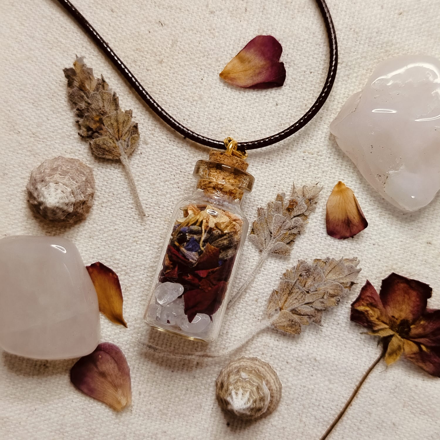 A garrafa da bruxa é um item muito utilizado na bruxaria moderna, é uma forma fácil de trazer a magia para o sei dia a dia. O colar de garrafinha é um amuleto completo para carregar consigo em todos os momentos.