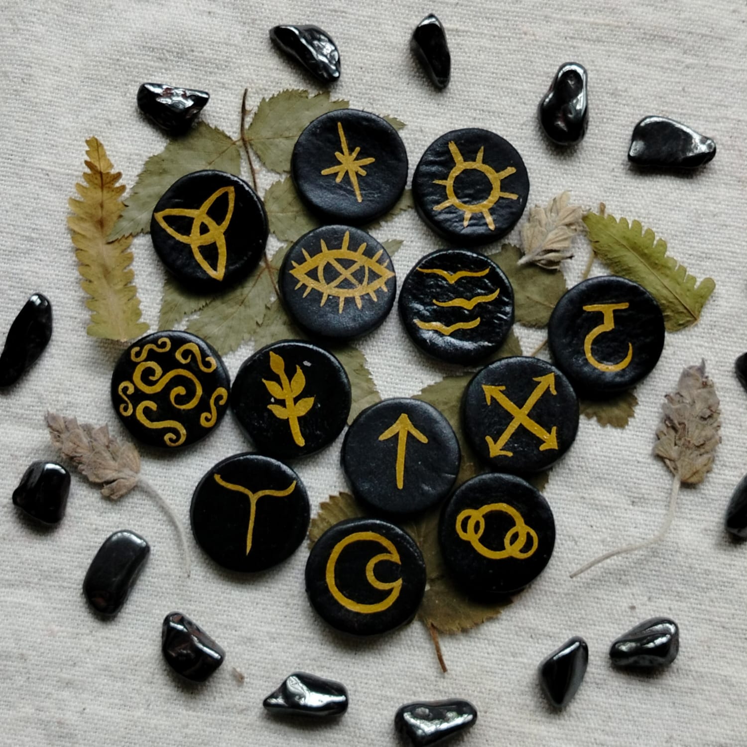 Oráculo Runas das bruxas produzido artesanalmente em cerâmica fria e pintado a mão.