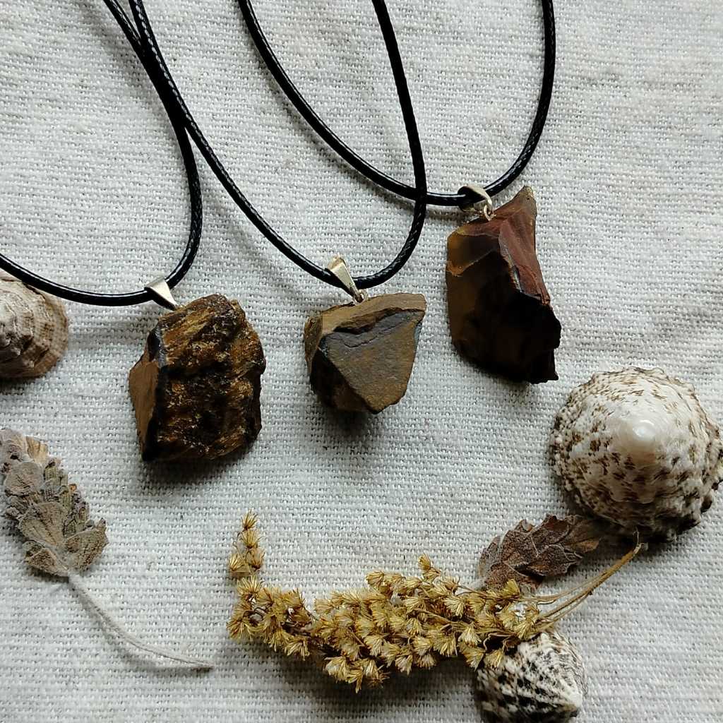 Colar com pedra Olho de tigre bruto. Tamanhos sortidos.